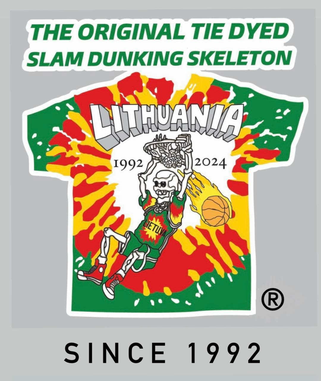 Iconic Lithuania Tie Dye® Lithuanian Slam Dunking Skeleton® Brand T-Shirts 30th Anniversary - Read the True Story Here